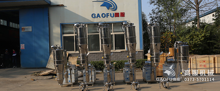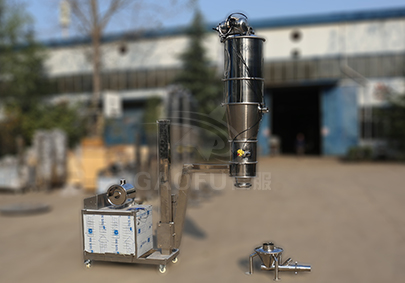 真空上料機(jī)中裝有壓縮空氣反吹裝置,每次放料時,壓縮空氣脈沖反吹過濾器,把吸附于過濾器表面的粉末打落下來,以保證吸料能正常運(yùn)行。